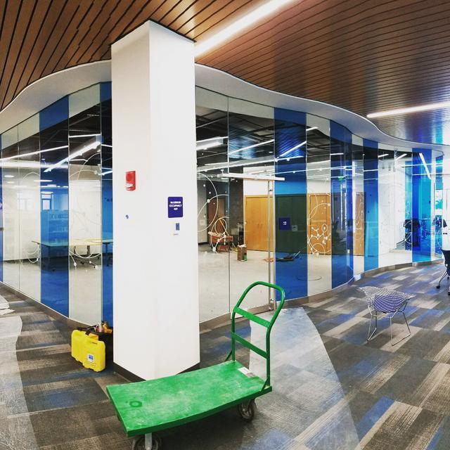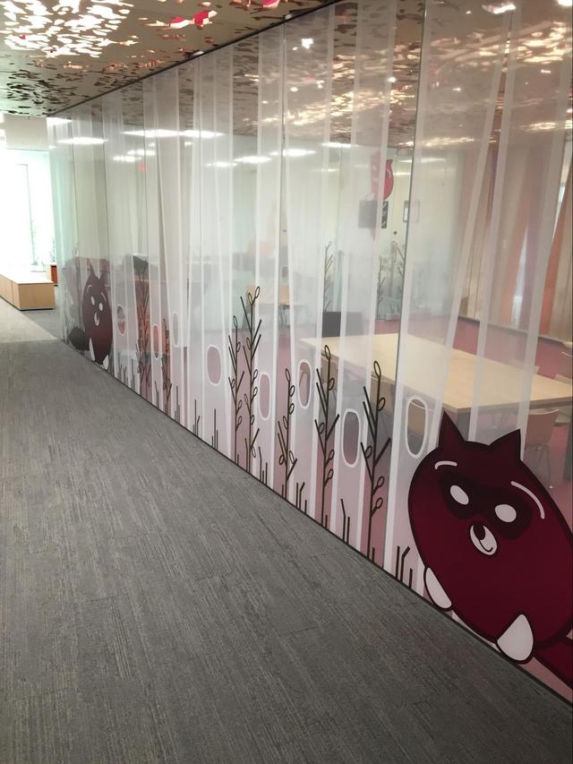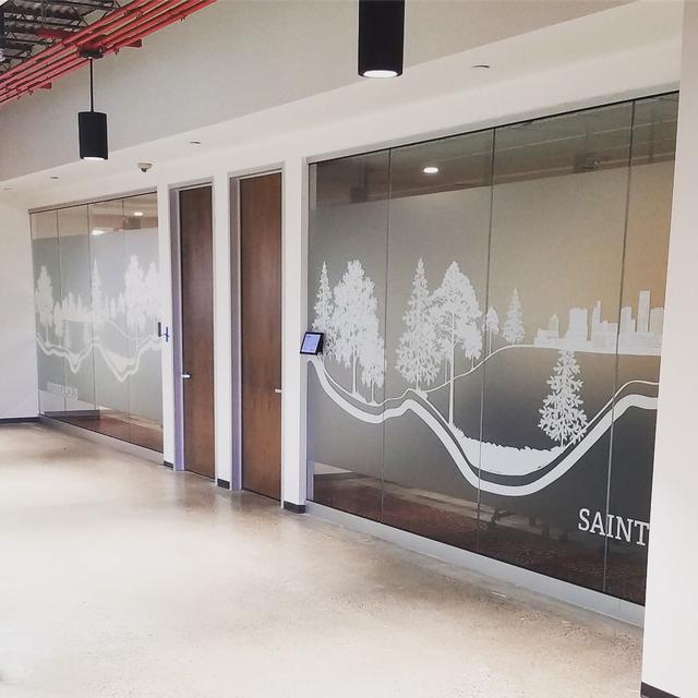 The biggest obstacle was figuring out how we were going to line each piece up throughout the space. Every window had to be measured accurately as each piece was then printed individually and installed individually. It was extremely important that each piece was lined up correctly since many of the graphics spanned over more than one piece of glass.